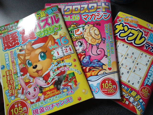 パズルマガジン、クロスワードマガジン、ナンプレマガジンの3冊が